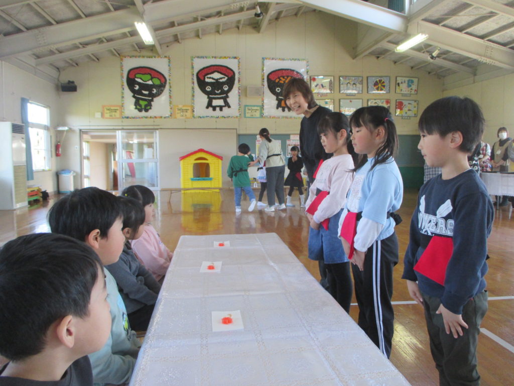 お菓子(紙製^▽^)をもらうゲームをしました。