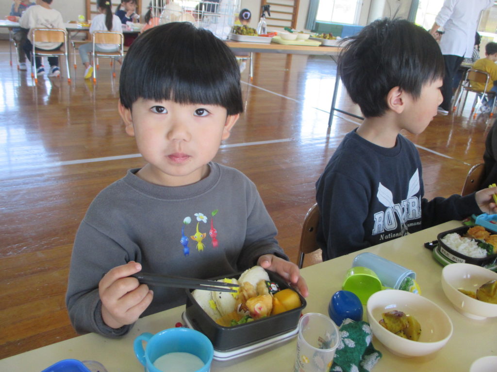 年少組さん・年長組さんと一緒に食べ、