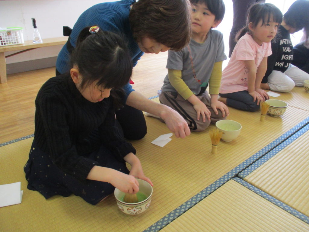 お茶の時間・季節のお茶会を通して、日本の伝統文化に触れ親しんでいます。茶道は礼儀作法が基本です。